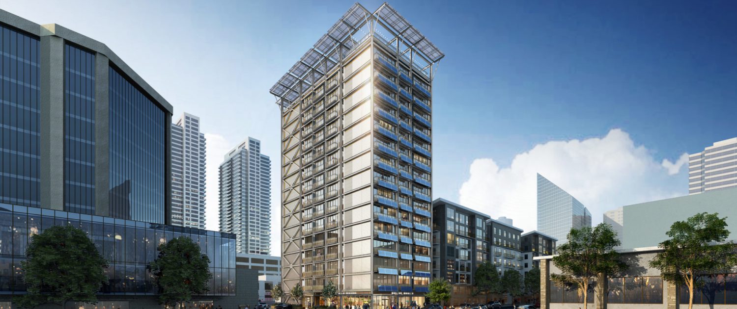Located in the Belltown neighborhood of Seattle, 303 Battery is a project making big news. Once completed, this apartment building will become the world’s first net-zero high-rise residential building certified by the International Living Future Institute. The building will stand 15 stories tall and have 112 total units, ranging in size from 350–900 square feet. Of the 112 units, five will meet Seattle’s Mandatory Housing Affordability requirements, and 22 will be income and/or rent-restricted. On the corner of Third Avenue, the ground-level floor will house 1,900 square feet of retail and commercial space. The project commenced in early 2021 and will be completed and ready for occupancy in April 2022.