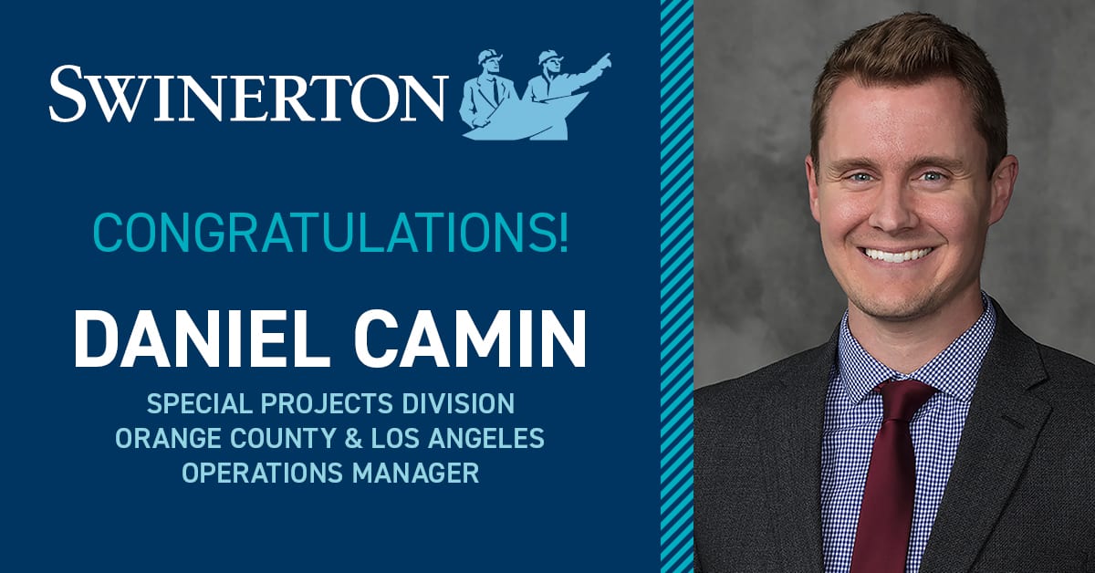 Swinerton is excited to announce the promotion of Daniel Camin to Operations Manager overseeing the Special Projects Division in Orange County and Los Angeles.
