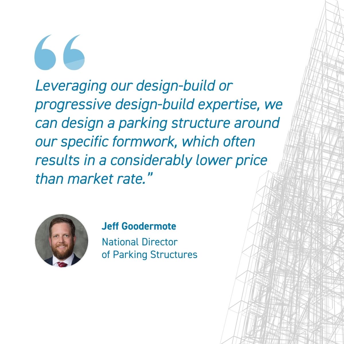 “We have invested in a substantial amount of self-owned concrete formwork that is specific to concrete parking structures. Leveraging our design-build or progressive design-build expertise, we can design a parking structure around our specific formwork, which often results in a considerably lower price than market rate,” Jeff continues. “We have even shipped our formwork over the Pacific Ocean to deliver concrete projects in Hawaii. In addition to our extensive collaboration with our self-perform concrete teams, we are beginning to engage our drywall teams to self-perform some of the fa?ade treatments of our parking structures to round-off our thorough, end-to-end expertise in this product type.”