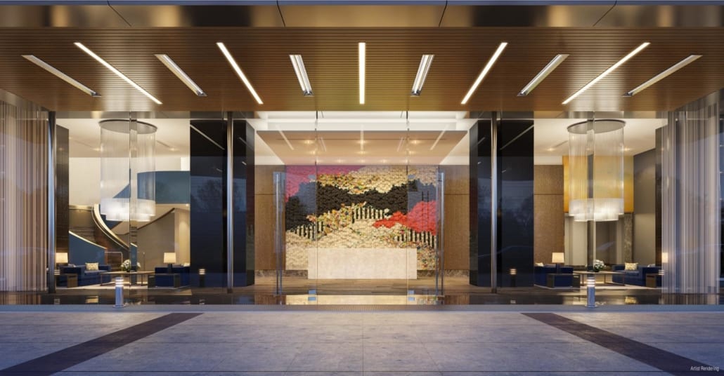 Construction included 75,000 square feet of indoor and outdoor amenities such as a full-service bar and lounge, fitness center, 75-foot indoor lap pool, exercise studios, screening room, game room, two glass-enclosed boardrooms fully outfitted with video conferencing equipment and TV monitors, a one-acre private park with California landscaping, and an outdoor lounging pool.