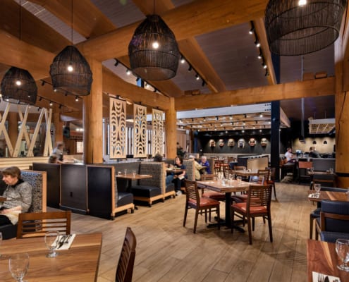 This project included a 4,800-square-foot restaurant as well as a 4,355-square-foot lobby renovation. The full project scope included demolition of the existing buffet and the build-out of a new bar and sit down restaurant. The existing tile floor was demolished in the lobby and all the finishes were refreshed.
