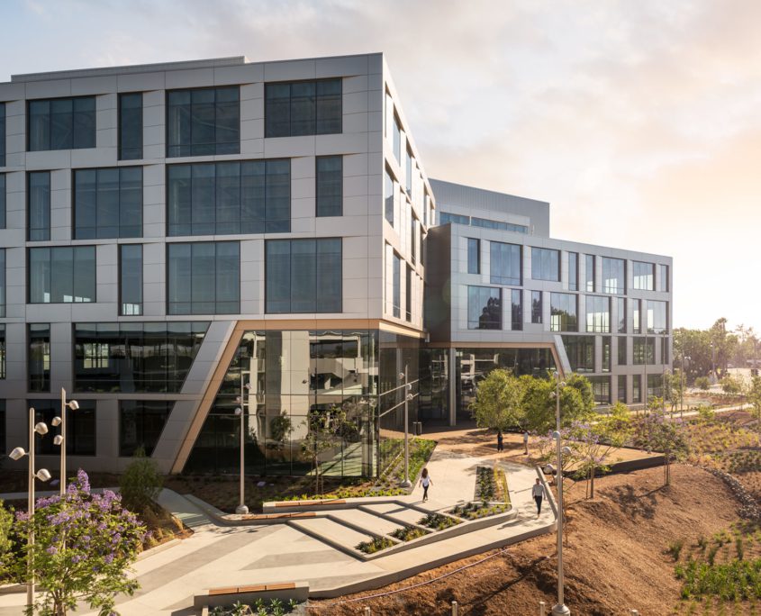 The new five-story, 150,000-square-foot office building is set atop large floor plates, providing an open seating plan across all levels. Set adjacent to the office building is a new 224,000-square-foot stand-alone parking structure with 600 spaces. The?state-of-the-art, creative working space features natural sunlight, numerous outdoor patios, open space gathering areas, lush landscaping, and high-tech operating systems. To ensure the highly complex skin panel and waterproofing system were installed correctly, a 33-foot tall full-scale mock-up was built. Swinerton self-performed?the structural concrete for both the building and the parking structure, along with interior framing and drywall. The project achieved?LEED? Platinum certification.