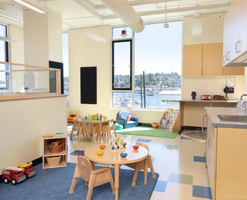 Swinerton continues to work with Bright Horizons Family Solutions, a long-standing client, as they expand their day care facility operation in the greater Puget Sound area. The project consists of a 13,000-square-foot?tenant improvement build-out of existing shell and core space in a new urban development in downtown Ballard.? The project presented many difficult logistical challenges being on a 3rd floor of an active jobsite with an interconnecting skybridge connecting to a rooftop playground.? Strategic partnering with our client and the property developer was key?to navigating?an appropriate start date to keep ahead of new construction activities on the floor below and maintaining the overall project schedule.?The project was complete on schedule.