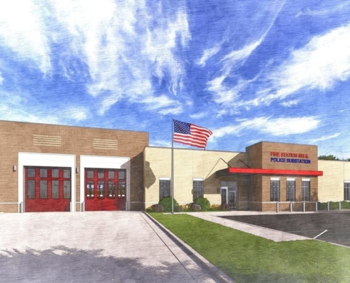 Swinerton is providing general contracting services for a new Johns Creek Fire Department station. Upon its completion in 2025, JCFD Station #63 doubles the capacity of the. Upon its completion in 2025, JCFD Station #63 doubles the capacity of the existing fire station and adds a much-needed police substation at the location. The new 14,675-square foot station is located on a 2.11-acre site within Newtown Park a half-mile from its existing station. The $7.8 million project, which will also house a substation for Johns Creek Police Squad #63, includes a 13,891-square foot station house and a 766-square-foot storage facility. Key features include two double-depth bays for trucks, work areas, a kitchen and dining room, day room facilities, bunk rooms, an apparatus bay, a gear maintenance area and an outdoor staging area. Plans also include the relocation of an existing tree and monument honoring a fallen firefighter from the old firehouse to the new station. Designed by Kennesaw, Georgia-based CROFT & Associates, Swinerton plans to tap their self -perform services for framing and drywall.