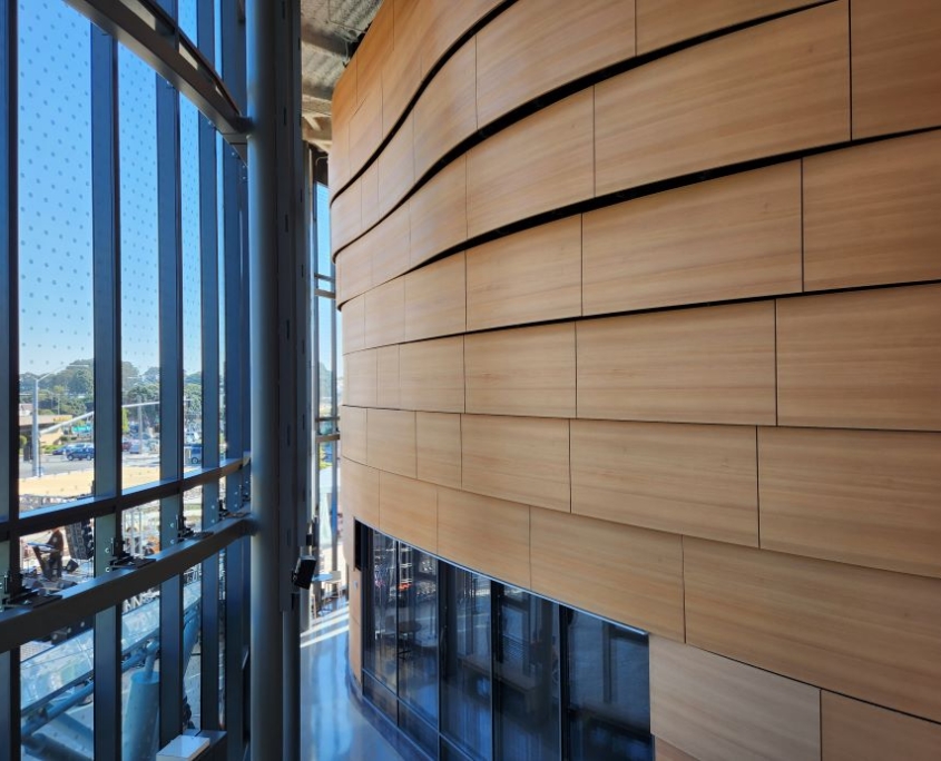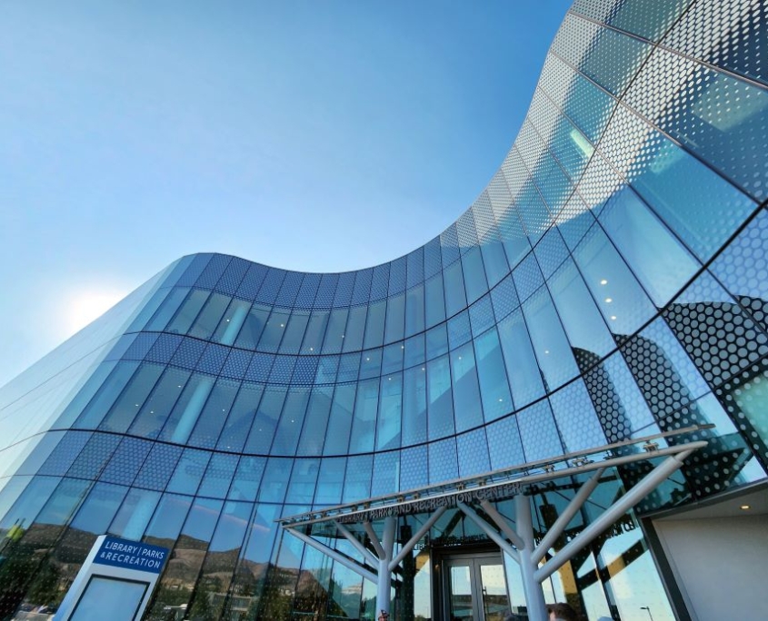 All portions of the building include enhanced internet capabilities for public use and opportunities to utilize state-of-the-art electronic technologies. Driven by performance, the building enclosure utilizes a delicate ceramic frit pattern that responds to varied solar heat gain and interior viewpoints. The visual pattern was produced using climate data and site orientation. The program distribution formed a parametric data set distributing 500,000 ceramic frit dots around the building. In addition to overall preconstruction and construction services, Swinerton self-performed structural concrete, drywall, and doors, frames, and hardware.