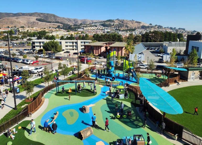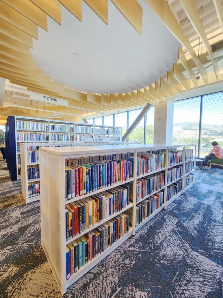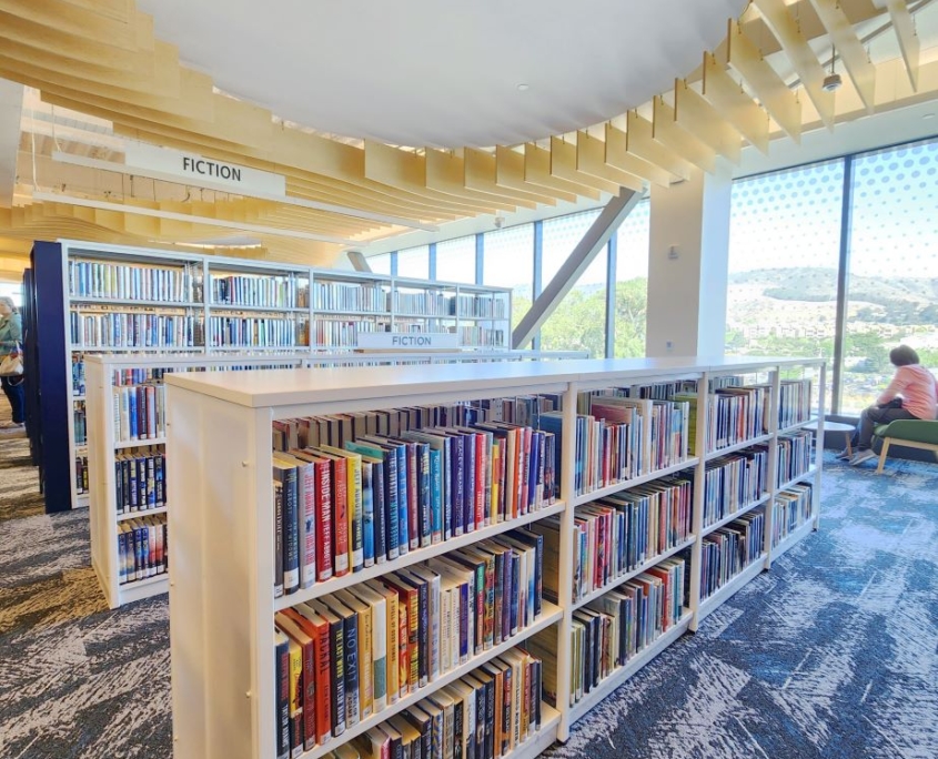 Reimagined as a town square to bolster civic engagement, the new 83,000-square-foot, three-story South San Francisco Community Civic Campus (Phase 2) consists of a new library, a community theater, and a parks and recreation center. The library features 35,000 square feet of collections space, a discovery center with a multipurpose program room, makerspace, a technology lab, study/tutoring areas, and flexible meeting rooms.
