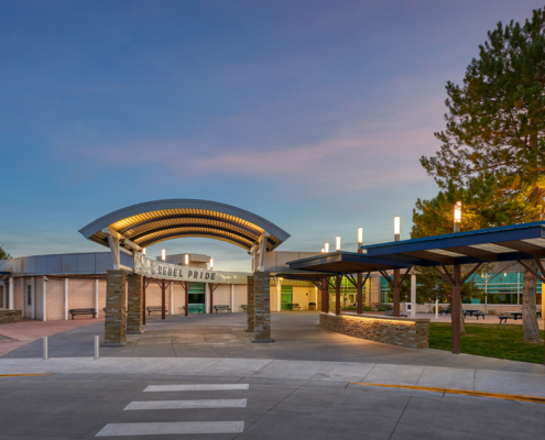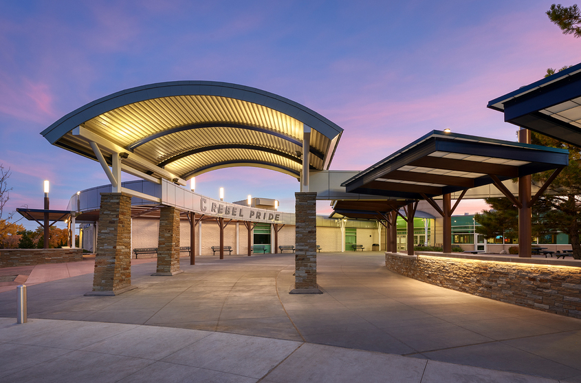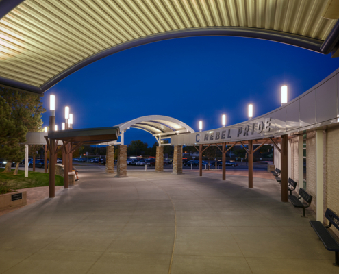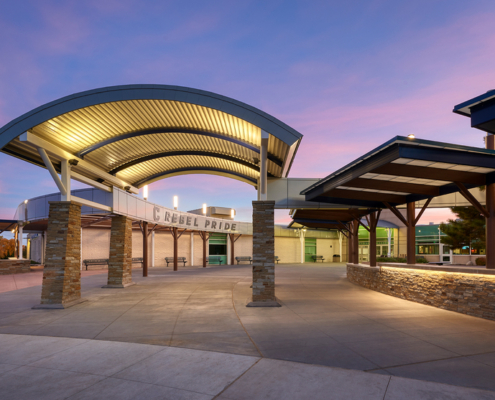 Phase 3 consisted of the demolition and construction of a new large canopy at the school’s main entrance. The canopy provides shade for seating and socializing. Enhancements were also made to the front office and a new secured vestibule was added to provide state-of-the-art monitoring capabilities for the office staff and school security.