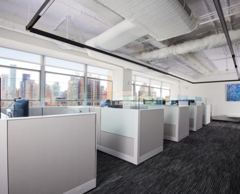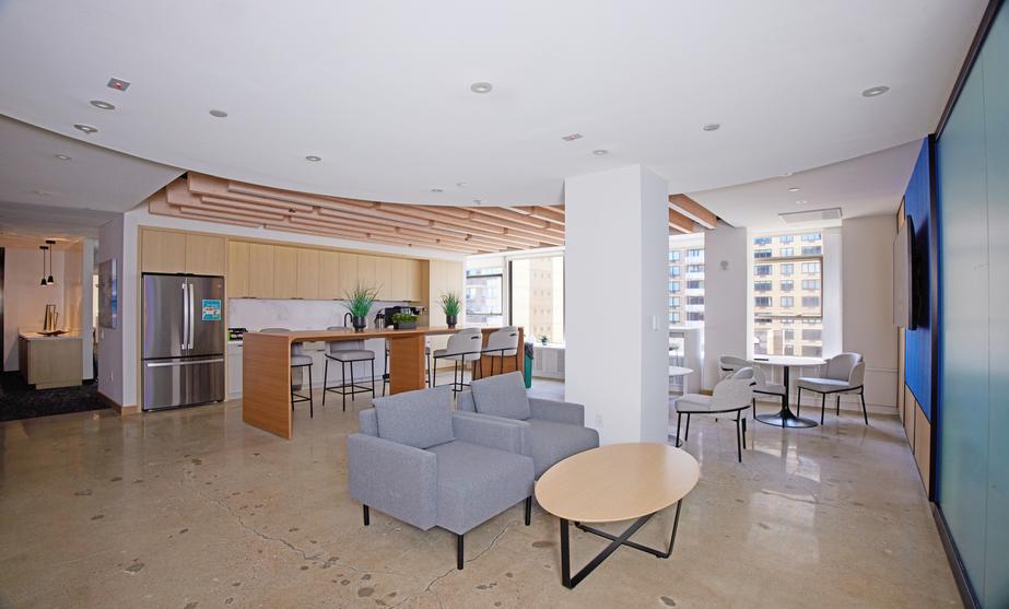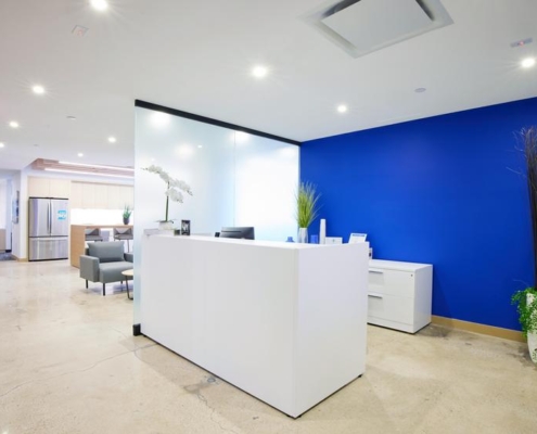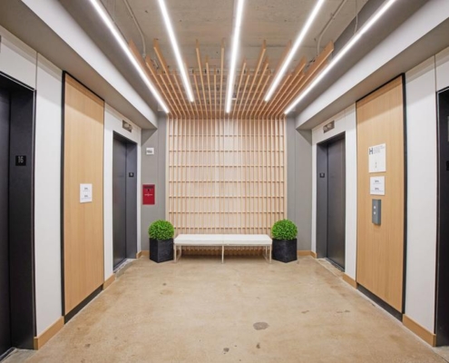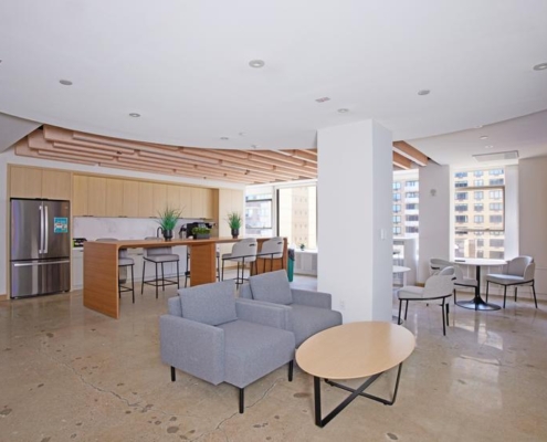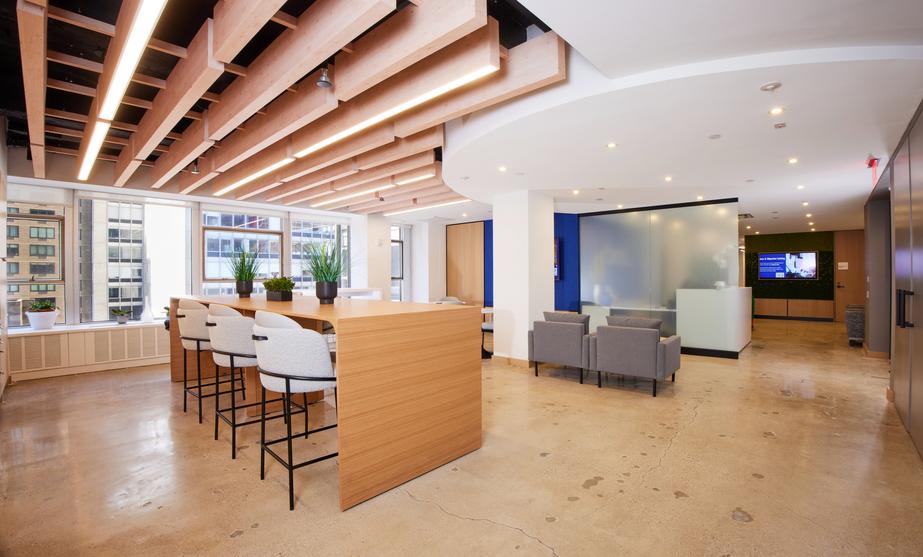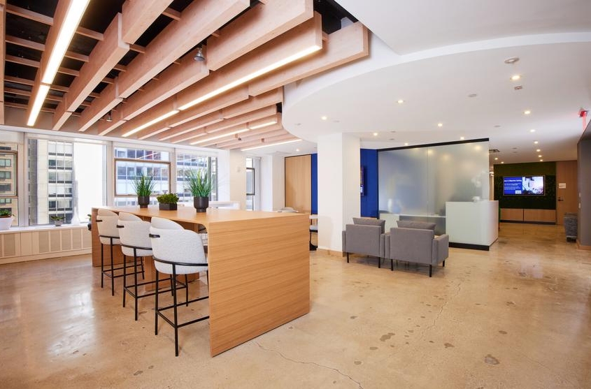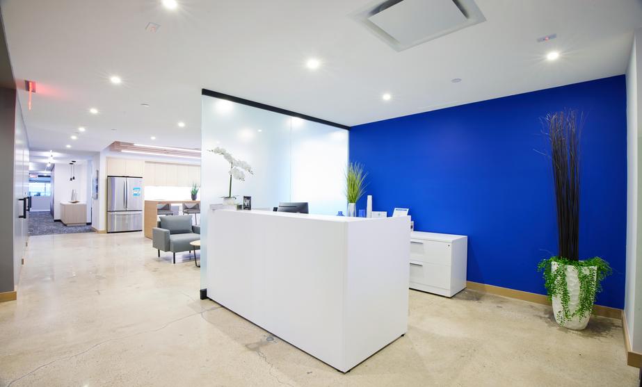 Swinerton provided general contracting services for the full interior fit out of a Class A office suite. ?Following the interior demolition of existing space, work included the buildout of a new reception area off the elevator lobby, perimeter offices, various conference rooms, a board room, a broker room, open work areas, a pantry, custom seating, and a phone room. The open work area features a custom “living wall” made of moss, along with a high-end custom slatted ceiling. New MEP and fire/life safety systems were installed.