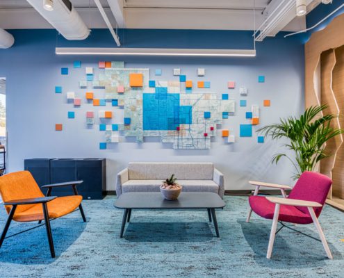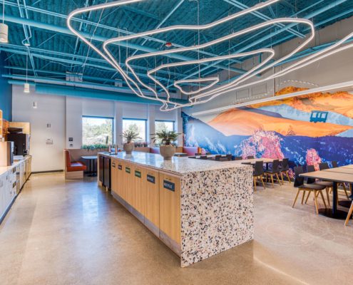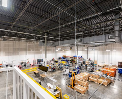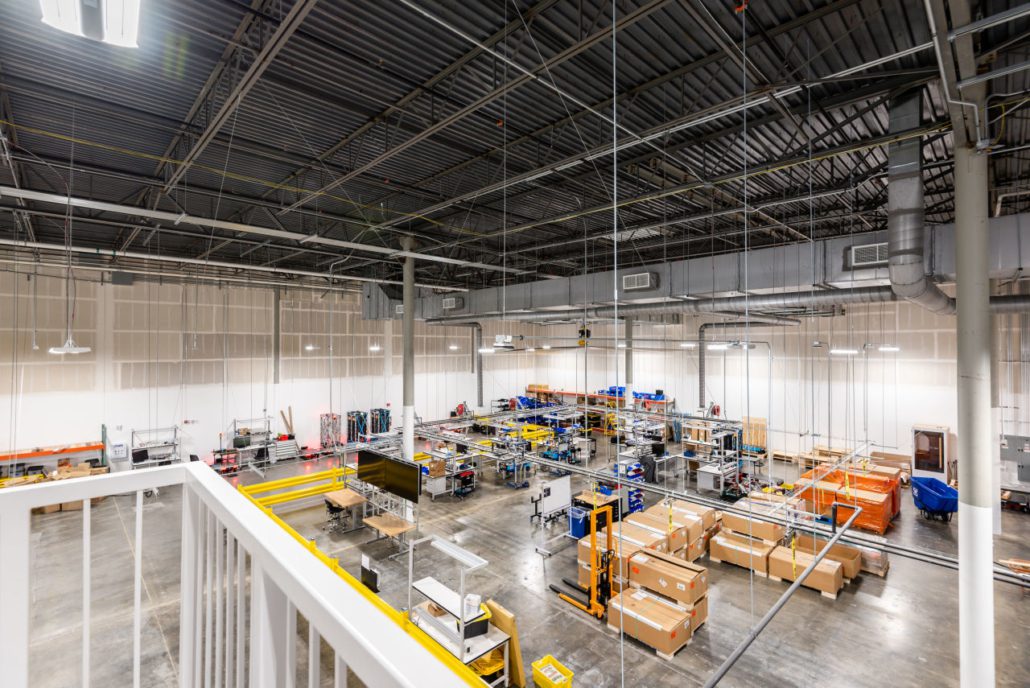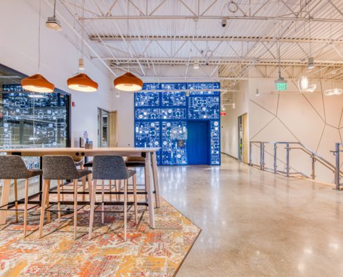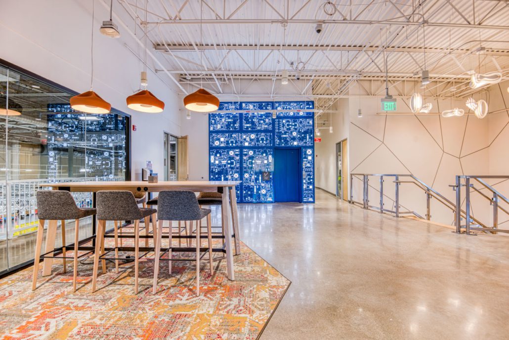 This 55,000-square-foot project was a demolition and rebuild of office space inside an existing warehouse, with part of the warehouse converted into an R&D manufacturing facility. The space remained occupied throughout the nine-month construction duration.?The work scope included demolition of all finishes and mechanical MEP items in the base building and the replacement of five units of rooftop mechanical equipment and an HVAC. Heavy coordination was critical for the team to access the main electric room through the telecom and fire optic rooms.The project also has a 15,000-square-foot mezzanine structure with an open office, meeting rooms, restrooms, kitchenette, elevator, and MDF rooms on the second floor. The first floor contains the reception area, bike/shower rooms, future space for office expansion, and large warehouse space, including a motion capture system.?To complete inspections, the team also had to ensure the existing fire alarm systems were within compliance in the other tenant spaces to complete inspections successfully.