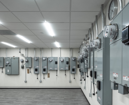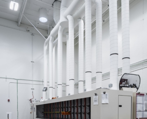 A LEED Certified project, an existing 90,000-square-foot warehouse was renovated into a variety of spaces, including labs/testing, research and development, offices, conference rooms, break rooms, locker rooms/showers, restrooms, and warehouse racking/storage. Space included 4,500 square feet of organic and inorganic lab areas with raised floors, five different kinds of lab gases, and multiple fume hoods. A new stairwell was built, along with an exterior lobby storefront upgrade.