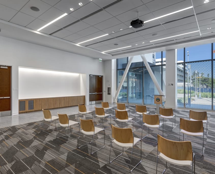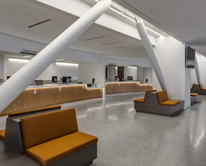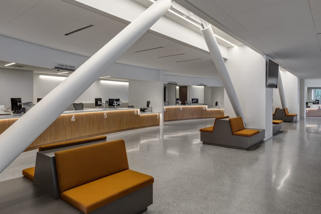 The building was the first phase of the overall Civic Center Facilities Strategic Plan Implementation. It houses the Orange County Service Center, a one-stop counter for County residents to engage with all 13 County departments. The space plan reorganizes and unifies departments and teams into functional ‘neighborhoods’ in a highly efficient and streamlined layout. As a result, it immediately reshapes how the County can best service its citizens and will cut the County’s operating costs for decades to come.