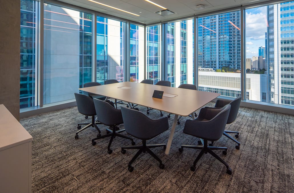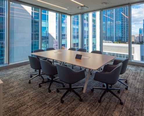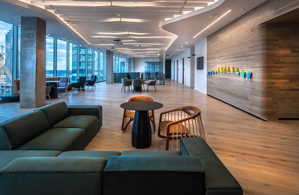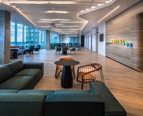 Located in the central business district of uptown Charlotte, this first-generation space anchors the newly constructed Legacy Union Tower, which is part of Lincoln Harris’ 10-acre, four-tower development that occupies two contiguous city blocks. Deloitte occupies the top four floors of the 18-story building and has naming rights, highlighting their presence in the booming local market. The scope of work included an extensive four-month preconstruction process followed by five months of construction. The UpFit created multiple amenities for Deloitte associates, including a state-of-the-art business center, collaborative and huddle spaces, private meeting and office spaces, and a 15,000-square-foot outdoor terrace. All spaces are accessible via an ornamental staircase that connects all four floors and provides spectacular views of the Charlotte skyline.