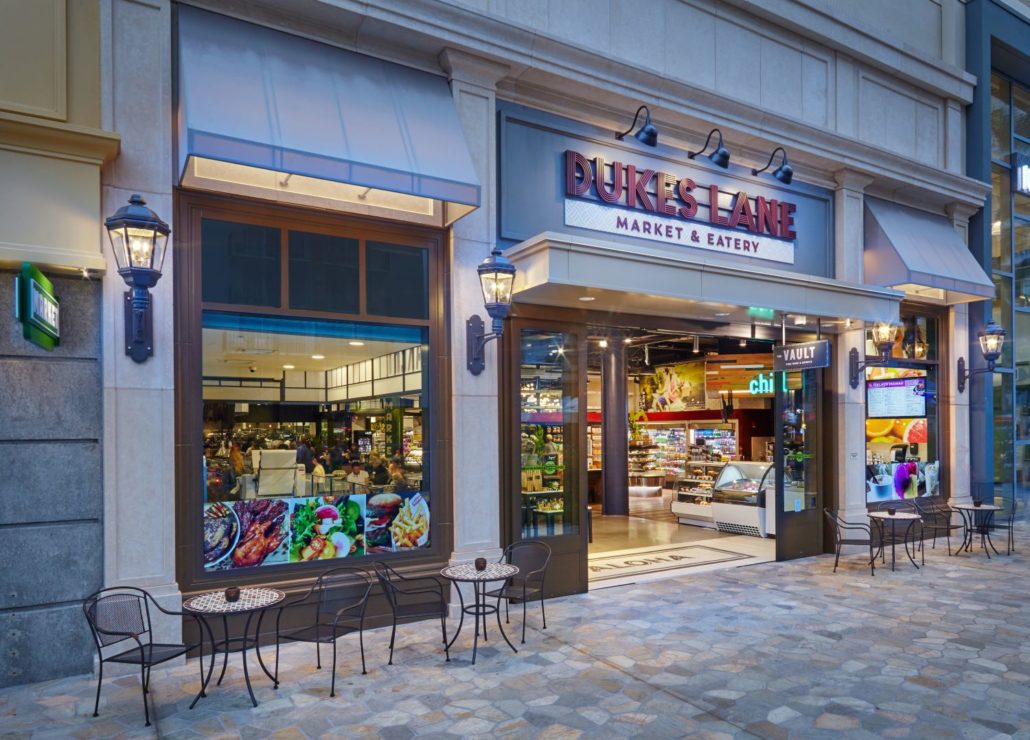 Following a full interior demolition, the 13,000-square-foot space received a complete buildout of new restaurant and retail space. Located on the ground floor, it is highlighted by the new Duke’s Lane Market and Eatery. Additional new spaces include restaurants, bars, a café, a bakery, a grab-and-go market, and outdoor dining areas with new landscaping. The interiors feature restrooms and kitchen storage rooms, along with a new exterior loading area and mechanical platform. Mechanical work includes new refrigeration systems; HVAC systems; electrical systems, including a new electrical transformer and panels; plumbing systems; and associated trenching for these systems. New storefronts and glazing were also added, along with the renovation of the exterior fa?ade. It required the removal of a portion of the exterior CMU walls and the addition of new structural steel. Work took place adjacent to heavily trafficked roads and pedestrian pathways.t