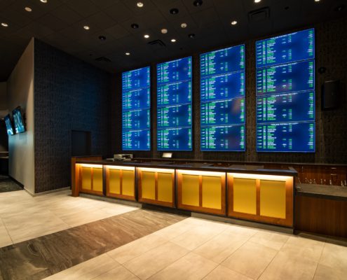 The Emerald Queen Casino BetMGM Sportsbook project transformed what was formerly the Summit Sports Bar. The bar was redesigned and expanded to be the new home of the sportsbook. The sportsbook includes a lounge and bar with 70 DreamSeat leather armchairs facing a 500-square-foot LED wall. This massive video wall is the only one in the United States. Accompanying the LED wall are over a dozen 86” high-definition televisions. The sportsbook also features six ticket windows and 30 betting kiosks. These are only a few of the impressive components incorporated when designing an immersive experience superior to any other sportsbook in the Pacific Northwest.