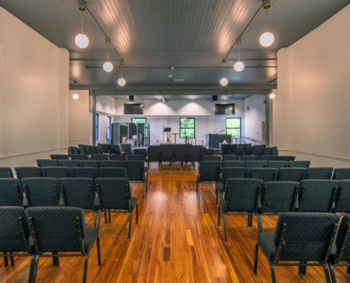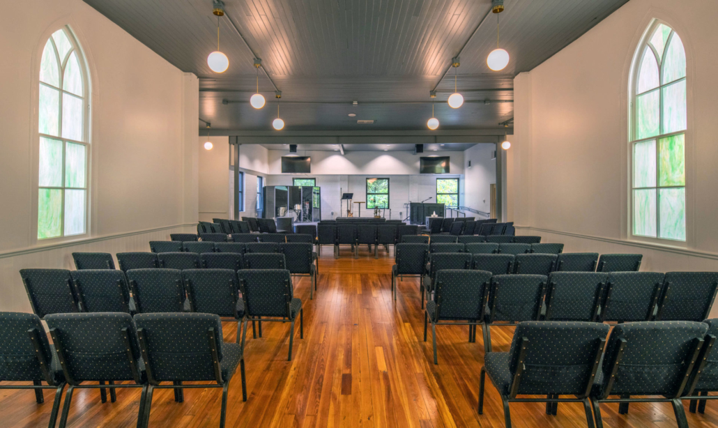 The church?features?a unique blend of the old and new in keeping the stained glass arch windows throughout the sanctuary well as introducing?new storefront windows throughout.?The dated carpet was?removed and the original wood flooring was refinished. The project team also raised the ceiling to expose the original wood ceilings and expanded?the interior sanctuary walls for?increased capacity. There is also?new ADA entrances on both floors and wider door openings throughout for improved accessibility.