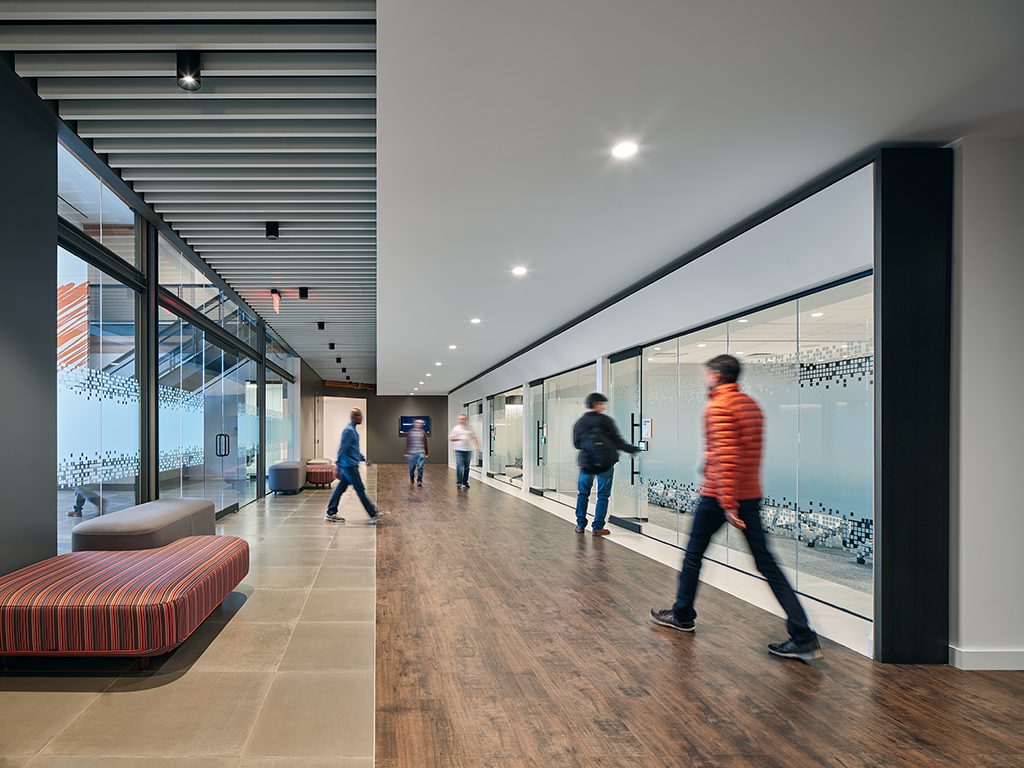 Open office layout, Private offices, Gym, Cafe, Conference rooms, Client presentation area