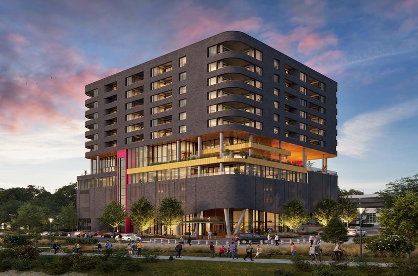Levels 2 and 3 are situated above ground floor retail space and consist of elevated ramped parking with 89 stalls. Additional subterranean parking provides 21 additional stalls. Level 4 houses approximately 7,600 square feet of leasable core and shell office space and seven apartments. Level 5 houses amenity spaces, a swimming pool, six apartments, and an additional 2,600 square feet of leasable core and shell restaurant space. Level 6 houses an indoor fitness area and six apartments. Levels 6-12 house the balance of apartments. The unit mix for the 92 apartments is 23% studios; 35% one bedrooms; 31.5% two bedrooms; 3% three bedrooms; and 7.5% penthouse units. Included within the 92 apartments are eight affordable units, consisting of (5) one bedrooms and (3) two bedrooms.