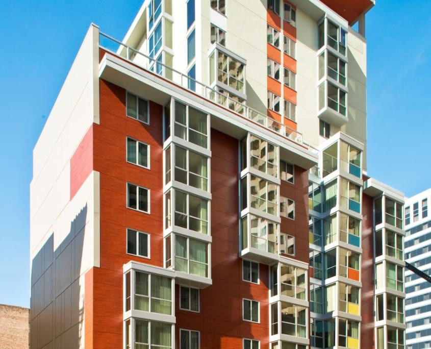 Swinerton built this concrete-frame, 14-story affordable housing structure in San Francisco’s Tenderloin district. This building features 81 affordable one-, two-, three-, and four-bedroom apartments for working families, along with parking and support services. Designed to foster a sense of community, the building features beautifully landscaped courtyards, a secure sun-filled outdoor play area for children, community lounge areas with outdoor decks, and a multipurpose room for community events. Sustainable features include high-efficiency boilers, green carpet, and nearly 90% of construction waste recycling. This project received the Gold Nugget Grand Award for Senior Housing and the 2009 National Readers Choice by Affordable Housing Finance magazine.