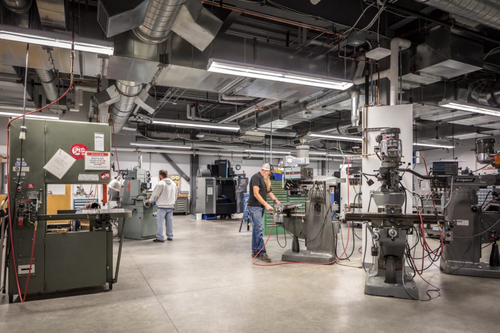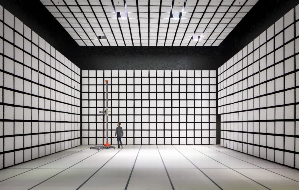 The facility houses wet and dry laboratories, chemistry testing areas, 12 “obeya” spaces, 3D printing rooms, a model shop, an explosion-proof room, and a $10-million anechoic chamber. Obeyas are cross-functional spaces that include open areas for team collaboration, huddle and quiet areas for designing and creating products, and a build space for product building and experimenting.