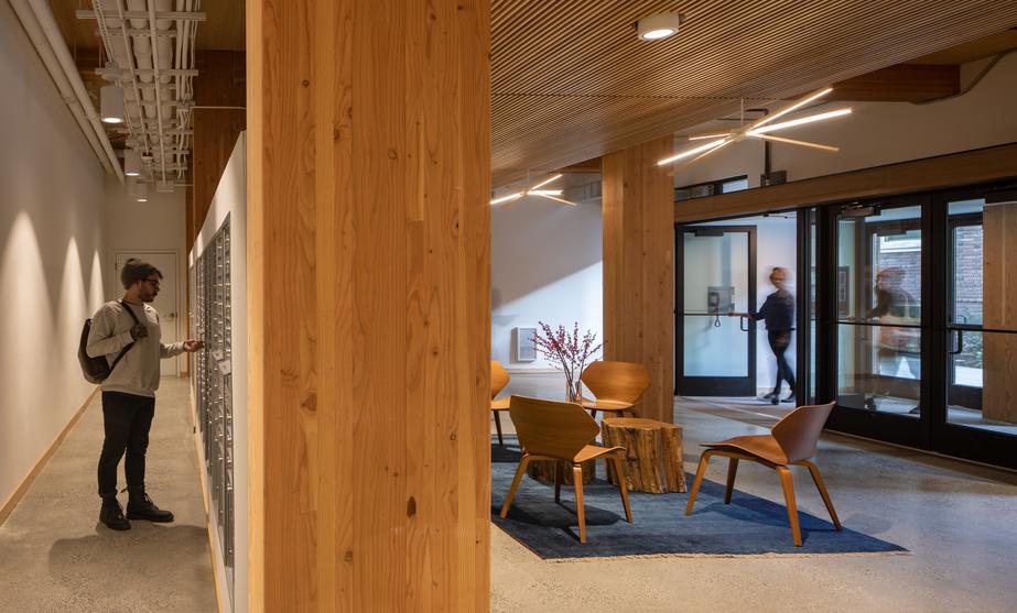 Both firms partnered with the structural engineer throughout the design phase to determine the optimal unit layout and structural grid to meet the project’s budget and program needs. Both firms also led meetings with the Seattle Department of Construction & Inspections to evaluate this new construction typology and propose solutions that addressed fire and life safety systems during both construction and upon occupancy.
