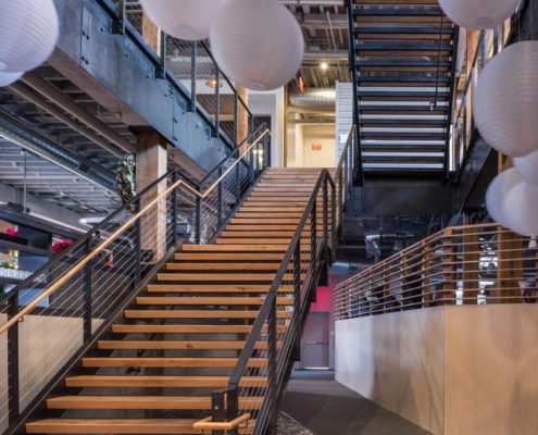 650 7th St. houses the new Heroku home. The design team built the DNA of this project by combining ideas from Heroku’s philosophy, the programming language “Ruby” and the Japanese philosophy Wabi-Sabi. Heroku’s vision and driving force for the space was to be simple, natural and embracing the imperfection. The first floor houses public-facing spaces. It was really important for Heroku that the food, gathering and movement/connection through the space were somehow linked. “The smell of food needs to travel throughout the space so it announces that it is time to gather around the table” James Lindenbaum (founder).
