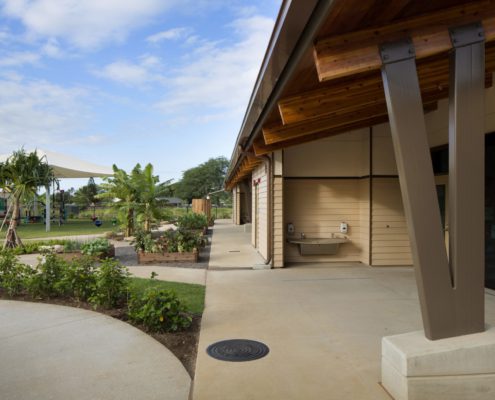 What was once an empty field of rocks and dry kiawe wood, is now a sanctuary of early education and family resources for the surrounding communities of the Waianae Coast. The Kamehameha Schools Community Learning Center at Ma‘ili consists of a ground-up construction totaling about 10 acres of extensive sitework and the erection of 57,509 SF of mix-use buildings, which included an Infant Toddler Center, 3 Preschool Buildings, and the Kauahale building which housed office administration and operations for the facility. The Kamehameha Community Learning Center provides an invaluable resource of early education and childcare, essentially creating 185 additional preschool seats and expanding the capacity from Kahe Point to Ka’ena Point by 20%, which will continue to benefit the people and families of the Waianae Coast for many years to come.