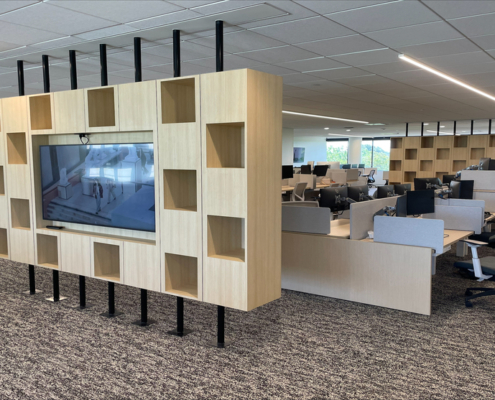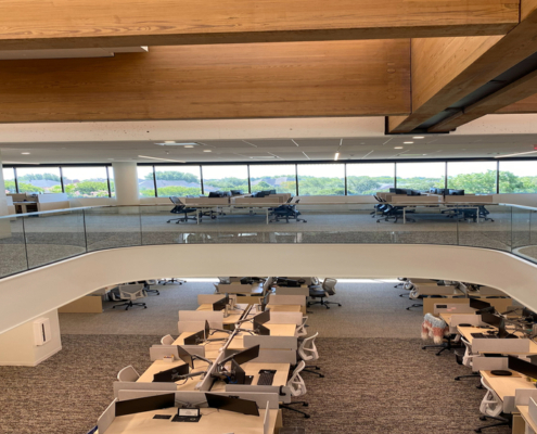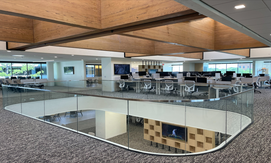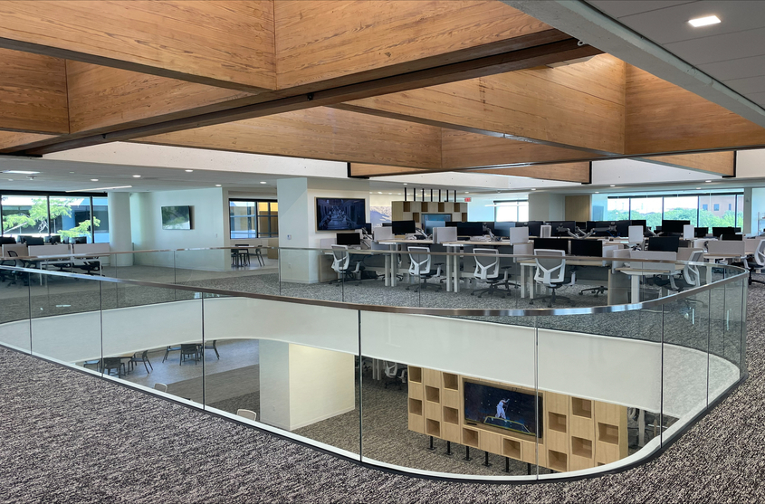 Swinerton built out this mission critical customer service center for a luxury retail client. This facility will serve as a regional office for employees and includes workspace, training labs, collaboration areas, a product repair workshop, cafe and dining areas, and shared support services.