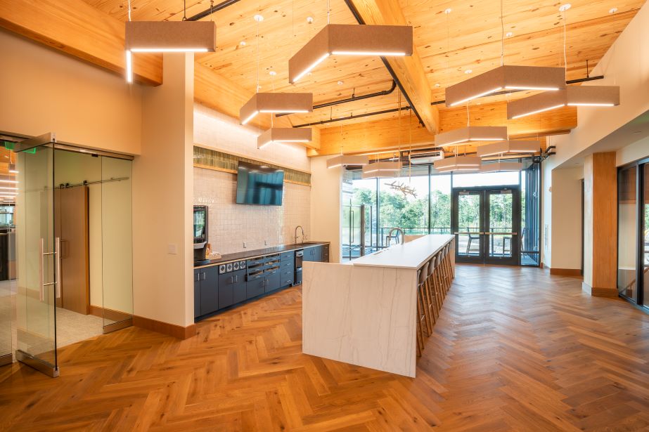 The first project of its kind in eastern North Carolina, Building Four is constructed with a 100% mass timber structural system under an exterior of cypress siding, metal panels and curtain walls that complement the campus’ existing serene aesthetic. Designed by the Wilmington office of LS3P, the building showcases biophilic elements such as exposed timber and natural light, as well as encourages occupant connectivity to the natural beauty of the surrounding wooded area and pond on the campus. The building is expected to achieve LEED Silver certification.