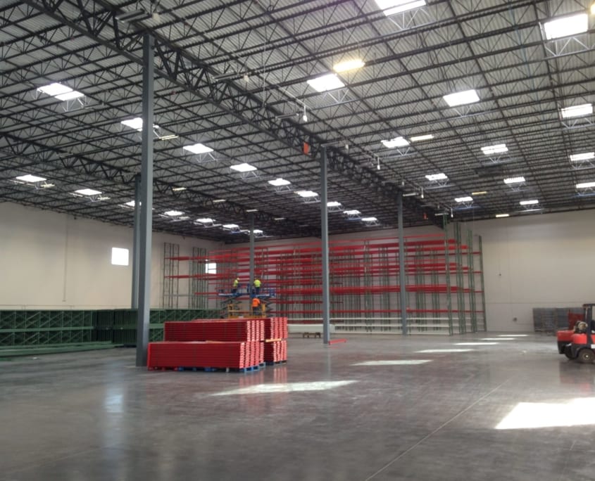 Working for a pharmaceutical supply distribution firm, the new 90,000-square-foot, single-story warehouse facility was constructed utilizing 123 tilt-up panels averaging 48 feet in height.? Scope included site preparation, CMU, structural steel framing, steel decking, miscellaneous metal fabrication, millwork, TPO roofing, flashing and sheet metals, fireproofing, doors/frames/hardware, rollup doors, glass and glazing, skylights, drywall, ACT, epoxy flooring, painting, canopy, fire sprinklers, plumbing, HVAC, electrical, as well as exterior improvements, which included paving, installation of a chainlink fence, and landscaping.