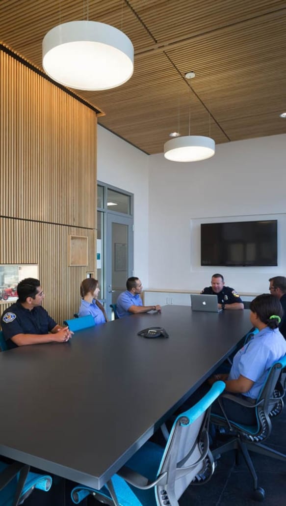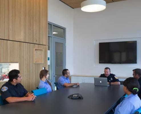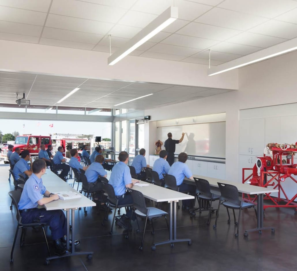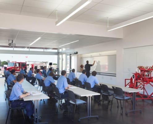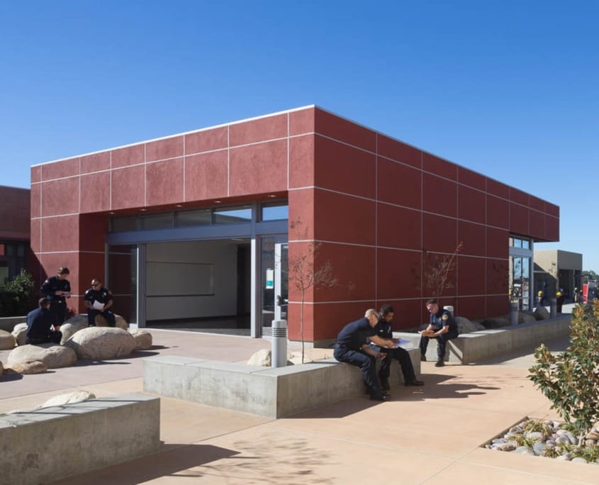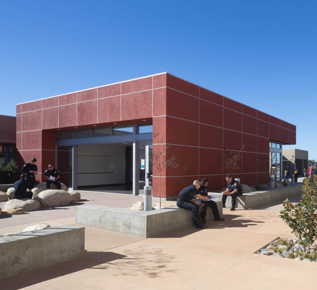 Design of the facility incorporates outdoor places for group training, gathering and events. In addition the multi-purpose hall provides an overlook to the Grinder for observation of apparatus training. The multi-purpose room and student lounge have sliding glass doors allowing the rooms to extend into the exterior patio and landscape areas.