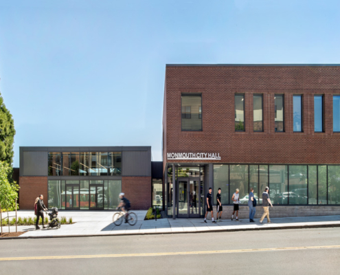 Swinerton provided general contracting services for the construction of the Monmouth City Hall. The new two-story mass timber building provides a new home for the city’s finance, building, community development, and administration departments. The City Hall features office space and new facilities for current staff, with room to expand for future use as the city continues to grow. A prominent component of the building is the court chamber featuring ballistic walls, which was designed for council meetings, court hearings, and public meetings.