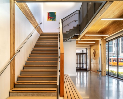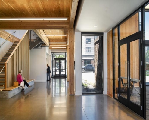 The modernized community spaces honor the area’s local natural resources and historic character with a welcoming public plaza that will support festivals and community activities. Significant site work included fill and grading of the existing site to tie in existing utilities and city streets, effortlessly integrating into the current infrastructure. Sustainable features include a photovoltaic canopy system, efficient variable refrigerant flow (VRF) mechanical system, and low carbon mass timber structure.