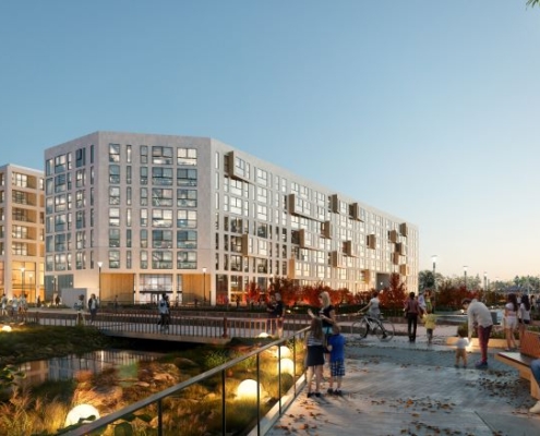 The project will?feature?sustainable systems, including?high SEER-rated HVAC systems, energy-efficient appliances and rooftop solar panels to power amenity areas. The units will contain?in-unit composting, low-VOC paint, low-energy LED lighting and energy-conserving smart thermostats.?Tenants will have access to shared electric vehicles, ranging from e-bikes and e-scooters to electric cars.