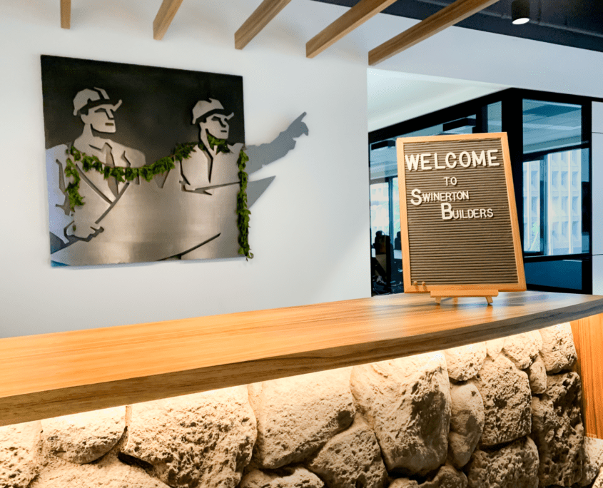 In early 2021, Swinerton Hawaii moved to a new office location in Downtown Honolulu. A design-build project, we utilized our own internal work forces to personally build out the existing 11,000-square-foot office space. It provides additional square footage for enhanced amenities, including multiple collaboration rooms and virtual conferencing rooms; a creative, open space work environment; and an inviting social gathering space. Our new offices also provide additional workspace for the continued expansion of our Special Projects and Self-Perform teams. To showcase their capabilities, we utilized their combined strength and expertise to meet our vision. They provided opportunities for constructability improvements, improved the quality of installation, helped control the schedule, and decreased costs