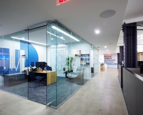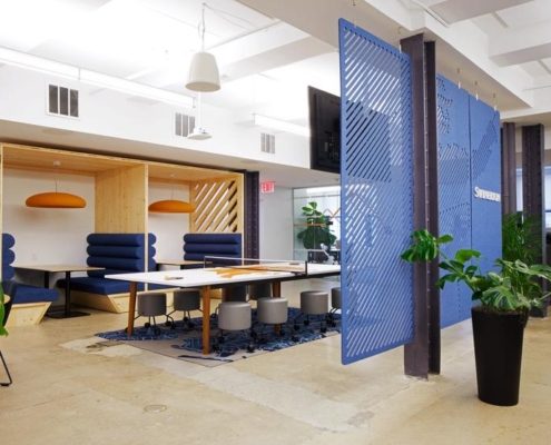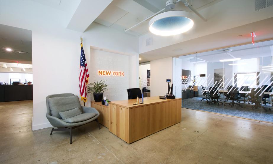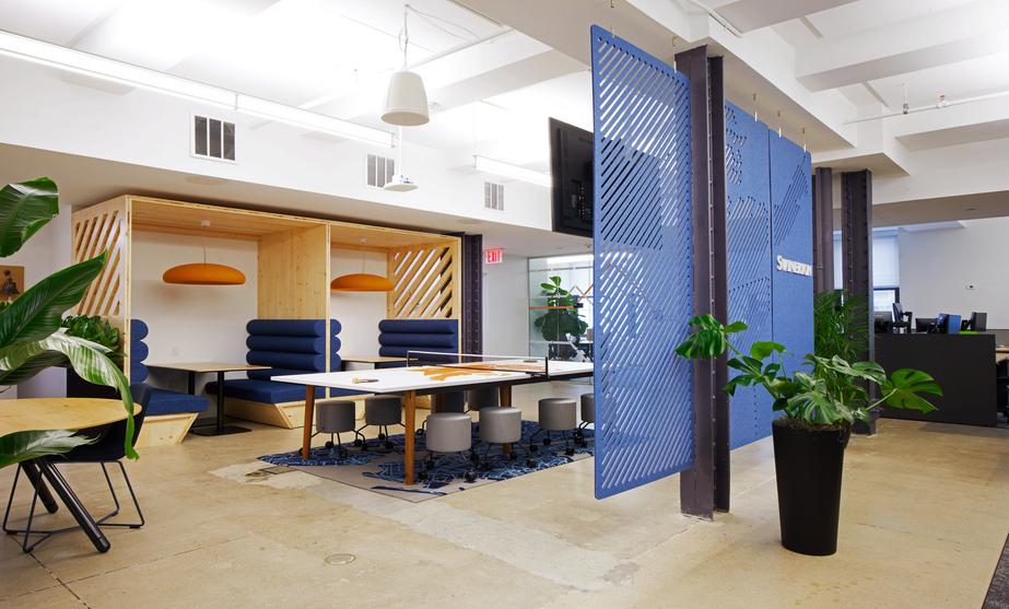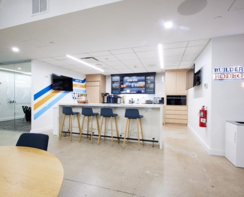 Swinerton’s New York Division moved to a larger 7,500-square-foot space to accommodate the growing team as their operations continued to expand. The space includes numerous private offices, conference rooms, huddle spaces, and workstations while incorporating custom Swinerton branding and aesthetic nods to New York. A multipurpose lounge area functions as a break room, meeting area, and event space and incorporates the use of Cross Laminated Timber (CLT) as a nod to Swinerton’s close working partnership with their subsidiary Timberlab.