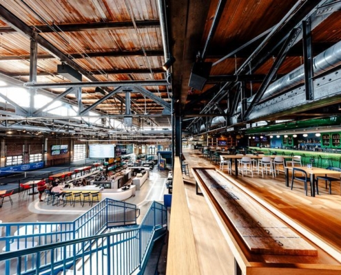 Swinerton is providing general contracting services for the construction of Tipsy Pickle- an “eatertainment” venue in the Camp North End area of Charlotte. The 76-acre, mixed-use development brings nearly 40,000 square feet of dining, pickleball, and other hospitality amenities to its campus. A full-size commercial kitchen supports the restaurant, and three bars offer refreshments throughout the space. Sports enthusiasts can choose from four indoor and two outdoor courts with patio seating. An indoor gaming area includes two golf simulators, ping pong, arcade games, pool tables, tic tac toe, darts and shuffleboard. The venue also boasts a retail space where guests can browse pickleball gear and themed merchandise. An adaptive reuse build, the space previously functioned as a US Army weapon storage facility and as a Ford Motor Company manufacturing plant for Model T and Model A cars.
