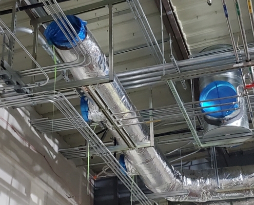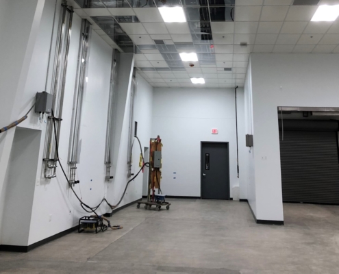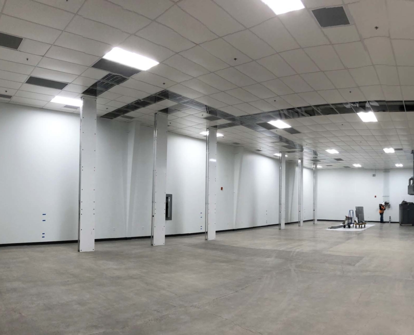 A three-phase project, the first of two phases provided renovations to 11,820 square feet of existing space. A 5,770-square-foot, two-story building expansion was constructed and seamlessly integrated into three shared parti-walls of an existing building. In doing so, the client was able to improve and expand their current quartz fabrication and production spaces. The renovation consisted of demolishing an existing acid room; sandblast room; break room; restrooms; mezzanine and stair; and exterior acid waste tanks. In doing so, the project doubled their space for glass blowing, while also adding a break room, a changing area, laundry facilities, and restrooms. Work took place within an active clean facility that runs nearly 24/7, which required tight coordination to minimize impacts to client operations.