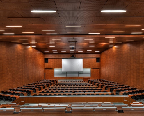 Certified LEED Gold, the 100,000-square-foot, cast-in-place concrete classroom and office building has three stories above-grade and 1 below-grade. The exterior consists of exposed cast-in-place concrete, unitized glazed aluminum curtain wall, and composite resin panels. Located on the UCSD main campus within the School of Medicine, it incorporates state-of-the-art design and technology to train medical students in the latest advances of medical and surgical technology. The Medical Education and Telemedicine Center combines and expands programs previously scattered around the La Jolla campus and at the UCSD Medical Center in Hillcrest. It includes a simulated hospital in the lower level with simulated operating rooms, exam rooms, emergency rooms, and microsurgical lab space.?The 6,800-square-foot medical and surgical procedures teaching laboratory contains 22 stations where students are instructed in the latest techniques of surgical, robotic, endoscopic, and other special techniques. It also features a 350-capacity, three story auditorium space on the ground level along with a restaurant and outdoor courtyard/gathering space for the staff/faculty and students. Upper levels include conference rooms, office space and teaching stations, all with state of the art audio visual and media services. Ground level site work incorporates high end decorative concrete and landscaping features. Project scope also includes the extension of the campus central plant utility structures (chilled water and high temp hot water lines) as well as a 12Kv electrical duct within a public street.