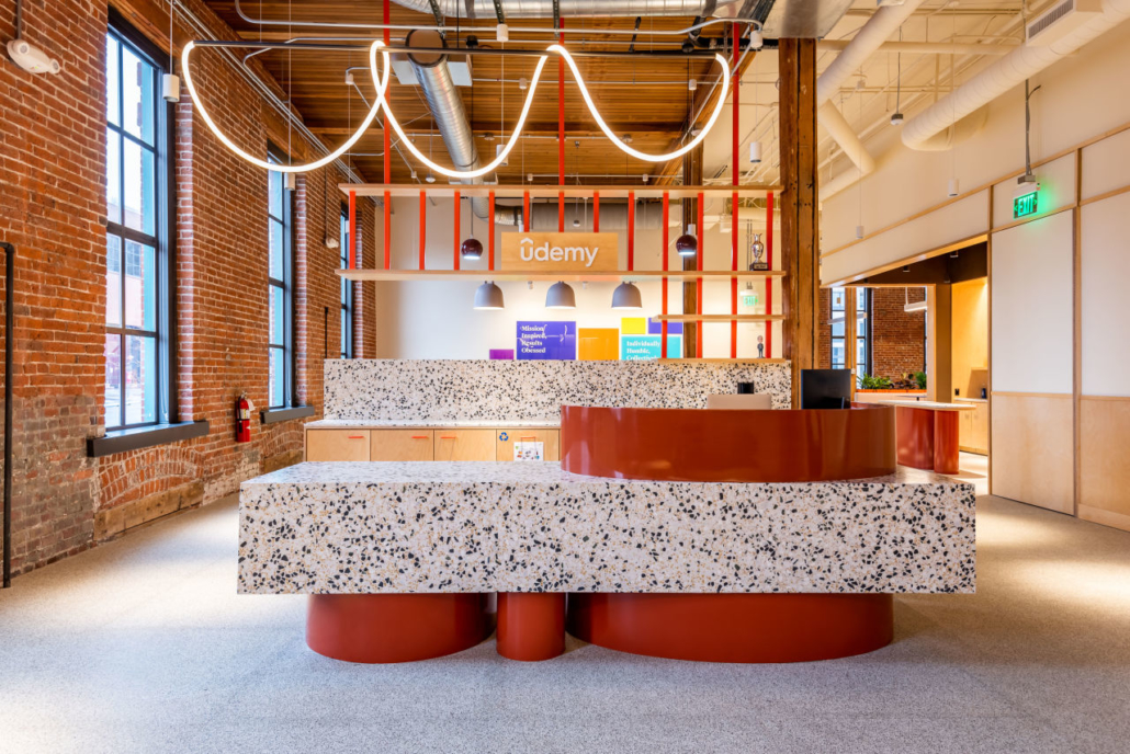 The days of dull cubicle spaces are long gone for Udemy as their new modern office has been refreshed! The Udemy office is nestled in the heart of Denver’s LoDo neighborhood, located in a historic building constructed in 1887.