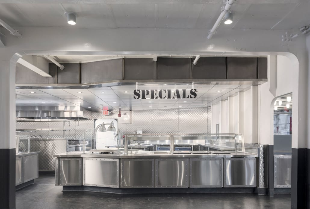 Docked in San Diego Harbor, the USS Midway is a decommissioned battleship open to the public. The Midway Museum exhibits the rich history of the Navy and Military in San Diego. The existing café in the museum was renovated and modernized to increase the visitor experience. Work included architectural upgrades to the walls, floors, counters, and finishes. Structural upgrades were also made in support. Mechanical upgrades were made to the HVAC system, which included smoke damage removal from the space. Upgrades were made to the electrical and plumbing systems; communications systems; and fire/life safety systems, inclusive of fire alarms and fire suppression. Work was performed while the museum was open to the public.