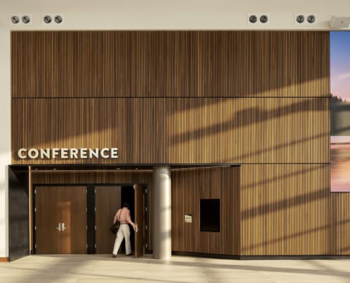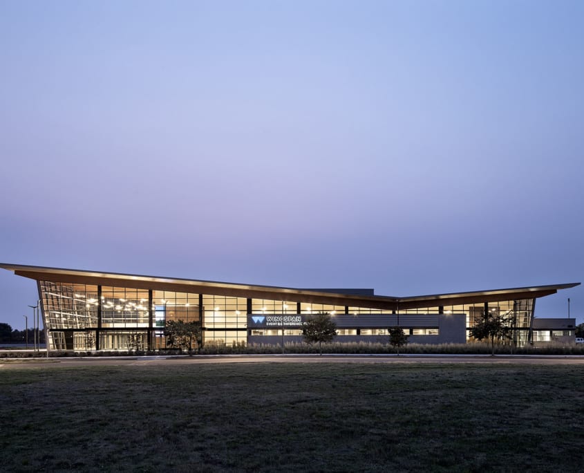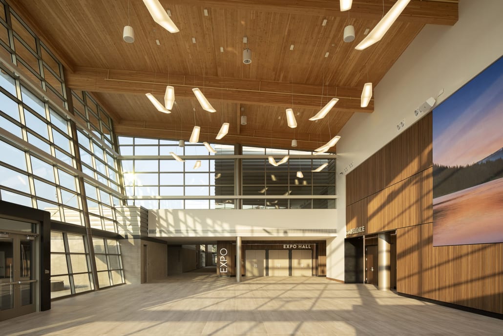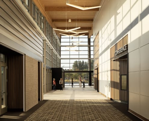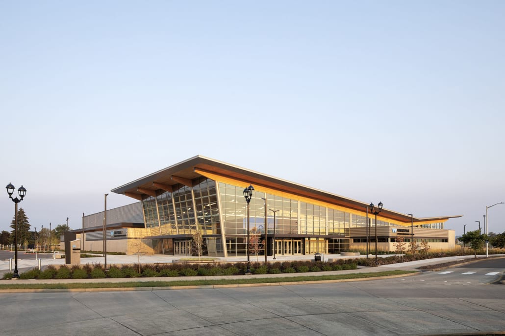 The new 89,000-square-foot Wingspan Event Center replaces event facilities on the County’s Fairgrounds that were deemed structurally unsound. The conference center utilizes a mass timber CLT “butterfly roof”, along with mass timber CLT structures over galleries and circulation. The main exposition hall utilizes mass-trusses and structural steel to achieve the longer spans required. The exposition hall can house 200 trade show booths, while also housing four conference rooms, three meeting rooms, offices, and concession areas with a commercial kitchen. The spacious interior is complemented by a large entry plaza adjacent to the lobby, along with an outdoor exhibit area on the west that opens into the interior grounds of the Fair Complex. Work also included a new 342-stall parking lot and a new 148-stall parking lot. The lots required the development of three new vehicular street entrance and exit points.