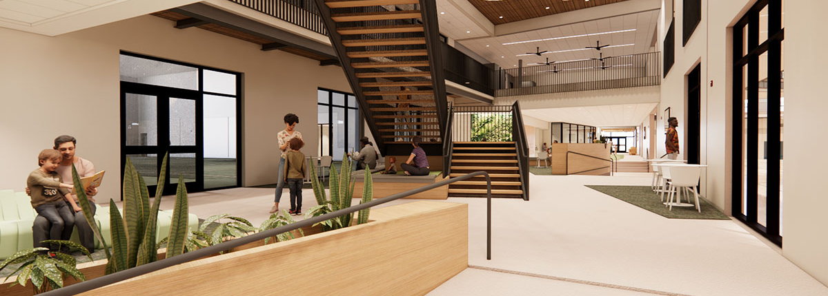 Swinerton has partnered with Byrne Construction Services through a joint venture. The Swinerton|Byrne team is building a three-story, 140,000-square-foot Recreation Center, located adjacent to the civic plaza, that will feature an indoor/outdoor turf area, a natatorium, a multi-function gym, and a second-floor indoor track and fitness area. The third floor includes a multipurpose event space, classrooms, and an outdoor patio. A community/senior lounge and childcare center are also on the first floor.