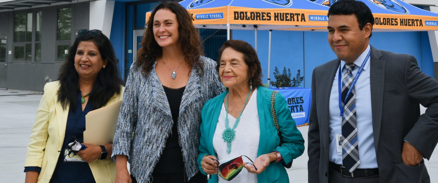 Celebrated labor organizer and civil rights activist Dolores Huerta, for whom one of the schools is named, attended the ribbon-cutting ceremony on Saturday.? In a Mercury News article it was reported that “Huerta praised the architectural successes of the new campus, remarking at one point, ‘I know what all of us are thinking: ‘I wish I could’ve gone to this school.”